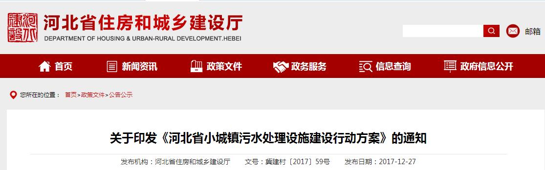 關(guān)于印發(fā)《河北省小城鎮(zhèn)污水處理設(shè)施建設(shè)行動方案》的通知
