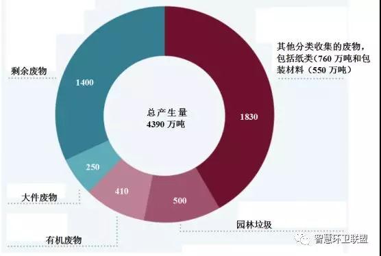 圖2.德國2013年時(shí)的城市固廢組成情況(單位:萬噸)