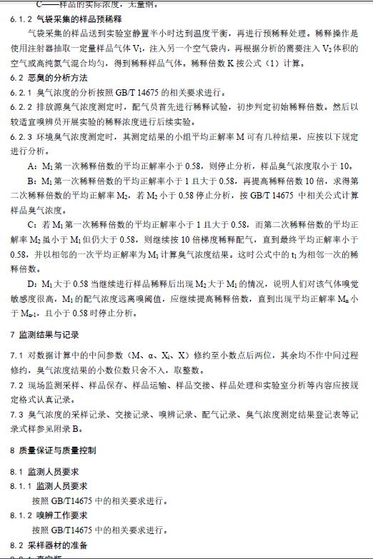 惡臭污染環(huán)境監(jiān)測技術規(guī)范(HJ905-2017)
