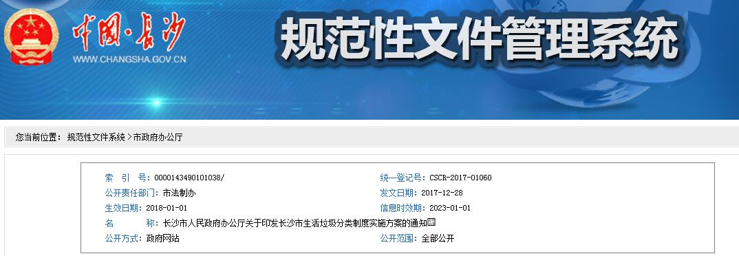 日前,湖南長(zhǎng)沙市政府印發(fā)《長(zhǎng)沙市生活垃圾分類制度實(shí)施方案》。全文如下:
