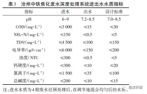 2.1.3 處理效果:水廠自2013年10月全線通水以來,已平穩(wěn)運(yùn)行超過3年,回用水水質(zhì)優(yōu)于國家標(biāo)準(zhǔn),完全達(dá)到業(yè)主規(guī)定的設(shè)計(jì)標(biāo)準(zhǔn)。焦化廢水深度處理系統(tǒng)主要控制的8項(xiàng)進(jìn)出水水質(zhì)指標(biāo)如表1所示。