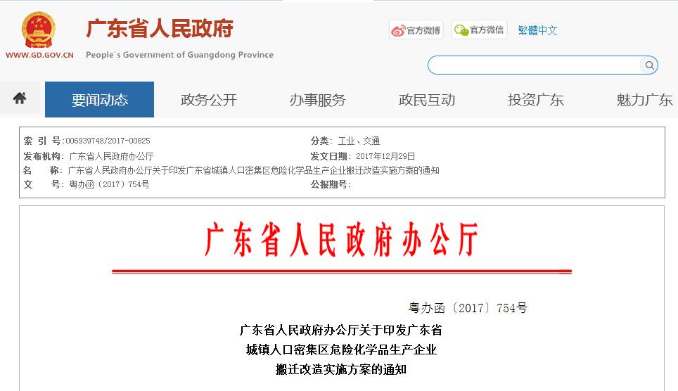 廣東省城鎮(zhèn)人口密集區(qū)危險化學(xué)品 生產(chǎn)企業(yè)搬遷改造實(shí)施方案