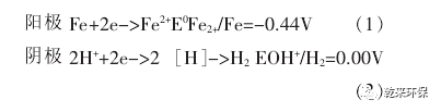 電極反應(yīng)產(chǎn)物具有高的化學(xué)活性,其中新生態(tài)的〔H〕和Fe2+能與廢水中的許多組分發(fā)生氧化還原作用,破壞廢水的發(fā)色或助色基團(tuán),失去發(fā)色能力;使大分子物質(zhì)分解為小分子物質(zhì)使難生物降解的物質(zhì)轉(zhuǎn)變成容易生物降解的物質(zhì),提高廢水的可生化性。在陰極,當(dāng)電解質(zhì)溶液(廢水)中有去極劑存在時(shí),則有