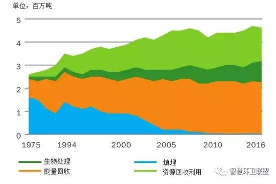圖12. 瑞典生活垃圾循環(huán)利用量隨時(shí)間的變化