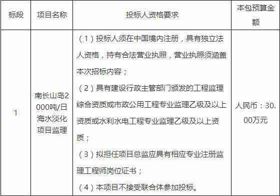 一、采購(gòu)項(xiàng)目名稱(chēng):南長(zhǎng)山島2000噸/日海水淡化項(xiàng)目監(jiān)理