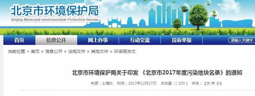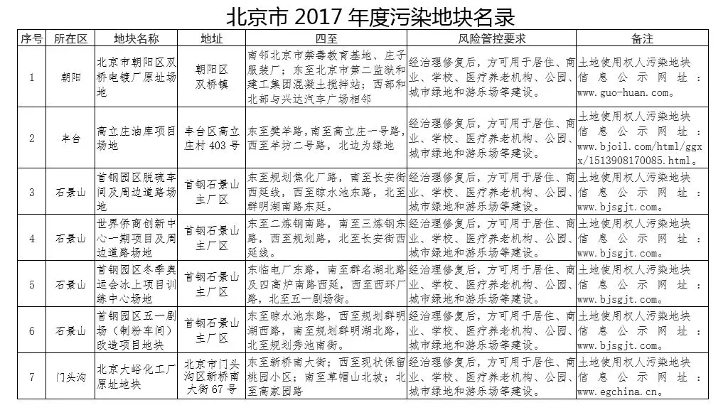 2017年12月26日 北京市環(huán)境保護(hù)局公布了《北京市2017年度污染地塊名錄》, 共有7塊污染地塊。
