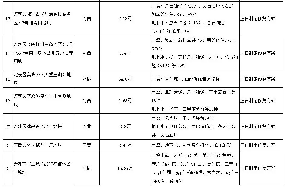 2017年4月7日天津市環(huán)境保護(hù)局 公布了《天津市污染地塊名錄》, 共有22塊污染地塊。