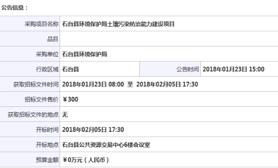 安徽省池州市石臺縣發(fā)布環(huán)境保護局土壤污染防治能力建設(shè)項目STZF2017191A招標公告,以下是全文:
