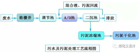 本項目污水氨氮濃度較高,因此在主體處理工藝選擇時應(yīng)考慮脫氮。同時針對廢水排放的實際情況,本污水處理工程主體工藝推薦采用A/O工藝。工藝主要由預(yù)處理段、生化處理段組成。預(yù)處理段由調(diào)節(jié)池組成。生化處理段由A / O 池、二沉池組成,本項目處理工藝藝流程見圖。