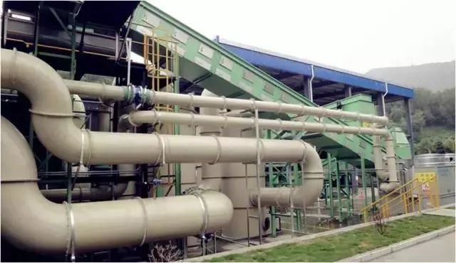 系統(tǒng)采用“機(jī)械預(yù)處理+生物水解+生物干化+后分選+厭氧處理”的EMBT工藝,垃圾經(jīng)過(guò)預(yù)處理和生物水解轉(zhuǎn)化為高濃度有機(jī)漿液和剩余可燃物,有機(jī)漿液進(jìn)行厭氧消化處理產(chǎn)生沼氣,可燃物部分經(jīng)過(guò)生物干化后作為燃料利用,臭氣處理后達(dá)標(biāo)排放,厭氧出水排入已有的污水處理系統(tǒng)處理。2015年12月項(xiàng)目開(kāi)工建設(shè),2016年9月達(dá)到設(shè)計(jì)處理規(guī)模。