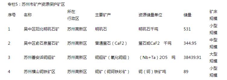 專欄5:蘇州市礦產(chǎn)資源保護礦區(qū)
