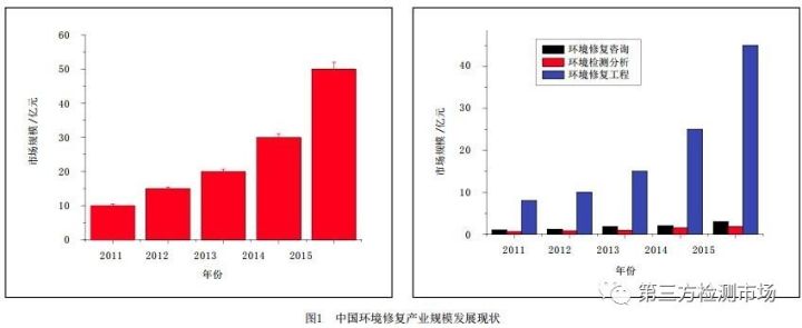 近年來,中國環(huán)境修復(fù)產(chǎn)業(yè)發(fā) 展迅速,修復(fù)需求越來越迫切,投 資規(guī)模逐年增長。初步估計中國共有工業(yè)污染地塊100萬塊~200萬塊,受污染需要治理修復(fù)的礦山面積150萬 公頃,受污染農(nóng)田約2000萬公頃。 2013年中國環(huán)境修復(fù)的資金投入約20 億元,2014年中國環(huán)境修復(fù)的資金投 入約25億元~35億元人民幣,2015年 在45億元~60億元之間,這包括工業(yè)企業(yè)污染場地、農(nóng)田污染修復(fù)示范和 河流底泥清理的試點工程,其中大部 分來自國家重金屬專項資金、地下水 專項資金等投入,其余部分主要來自 地方土地出讓資金投資等。系統(tǒng)梳理修復(fù)產(chǎn)業(yè)的發(fā)展階段和趨勢,對于下一步政策制定、市場規(guī)范和產(chǎn)業(yè)軟實力提升及有序發(fā)展顯得尤為迫切。
