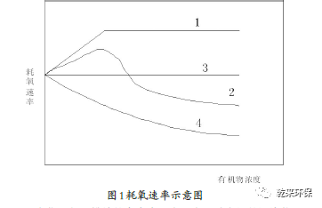 高含油有機(jī)化工廢水污染物是按照有毒和難降解特點進(jìn)行分類的,大致可分為四類:第一類,具有良好的降解性能、無毒的有機(jī)物;第二類,降解性能較差、無毒的有機(jī)物;第三類,當(dāng)液體濃度較低的時候,容易被微生物降解,但是當(dāng)液體濃度高的時候,廢水會抑制微生物的活性,是一種無毒的有機(jī)物;第四類,當(dāng)液體濃度較低的時候會對微生物產(chǎn)生抑制且有毒的有機(jī)物。廢水中不同有機(jī)物的耗氧速率示意圖如圖1所示。