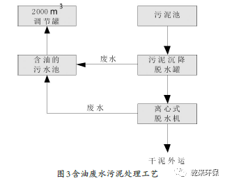 調(diào)節(jié)罐底部的油自動流入油泥浮渣的池子當(dāng)中,經(jīng)過渣泵傳送到脫水罐之中進(jìn)行脫水。將混凝沉淀池中剩余的污泥進(jìn)行定期地清理,并用泵傳送到脫水罐中。油泥進(jìn)行濃縮脫水的時候,使用離心機(jī)的進(jìn)料泵間油泥傳送到脫水機(jī)中,進(jìn)而形成泥餅,可直接送到鍋爐房中當(dāng)作燃料使用。還可加入高分子絮凝劑,使陰陽離子型的聚丙烯酰胺(PAM)進(jìn)行脫水。脫水后的廢水自動流入到含油的污水池當(dāng)中,利用污水提升泵將含油的污水進(jìn)行調(diào)節(jié),并處理。