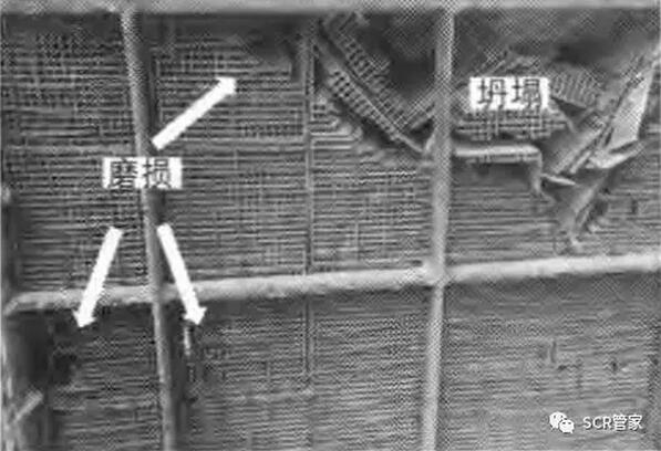燃煤電廠SCR技術(shù)尾氣脫硝工藝一般采用高塵布置,即高溫?zé)煔鈴腻仩t出來后,直接進入SCR反應(yīng)器進行脫硝處理,再經(jīng)靜電除塵、脫硫塔脫硫后排放。煤燃燒后產(chǎn)生的大量固體顆粒物隨著高速流動的氣流進入SCR反應(yīng)器后對催化劑進行長期的沖蝕,造成催化劑磨損及壽命減少。