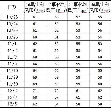 表2 各氧化溝運(yùn)行風(fēng)壓數(shù)據(jù)