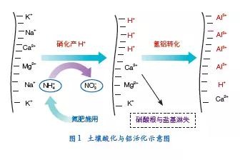 土壤酸化對農(nóng)林業(yè)生產(chǎn)和生態(tài)環(huán)境會(huì)造成嚴(yán)重危害。酸化使土壤固相中的鋁活化并釋放進(jìn)入土壤溶液(圖 1),對農(nóng)作物根系產(chǎn)生毒害,影響作物生長。土壤酸化還會(huì)加速土壤養(yǎng)分的流失,使土壤肥力下降。因此土壤酸化將導(dǎo)致農(nóng)作物減產(chǎn),農(nóng)產(chǎn)品品質(zhì)下降,農(nóng)民收入減少。在嚴(yán)重酸化情況下(pH值<4.0),農(nóng)作物甚至無法生長,農(nóng)民顆粒無收。研究表明,酸性土壤pH值由5.4下降至4.7時(shí),油菜籽減產(chǎn)達(dá)40%,花生和芝麻的減產(chǎn)幅度為15%左右。進(jìn)一步酸化將導(dǎo)致更大幅度的減產(chǎn),如當(dāng)土壤pH值由4.6 降至4.2時(shí),油菜籽的減產(chǎn)幅度達(dá)62% 以上。土壤酸化還會(huì)嚴(yán)重影響農(nóng)產(chǎn)品品質(zhì),如:土壤酸化導(dǎo)致香蕉品質(zhì)下降,使得廣西金穗香蕉公司近年來遭受了上億元的經(jīng)濟(jì)損失。