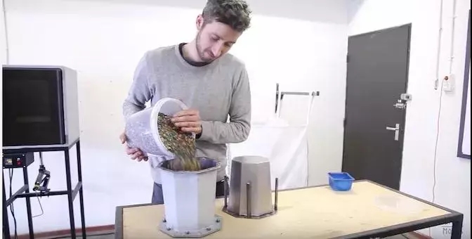 接下來(lái),見(jiàn)證奇跡的時(shí)刻就到了!你只需要將塑料碎片倒進(jìn)壓縮機(jī)中,塑料就會(huì)自動(dòng)加熱,然后你把它們壓入模具。
