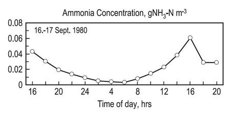 又如下圖所示,在距離某部分硝化的污水廠出水口1.5km的某河里的氨氮濃度晝夜差異。溫度、pH和氨氮負(fù)荷受到陽(yáng)光的同步作用導(dǎo)致了這里的有毒物質(zhì)濃度的極端變化。
