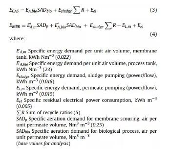 對于經典活性污泥法和MBR工藝來說,SED主要貢獻因子是曝氣,除了用于給生物質提供氧氣之外,對于MBR,還用于膜的沖洗。