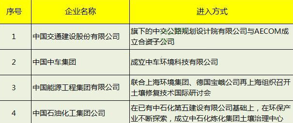 圖表2017年進入土壤修復領(lǐng)域的央企