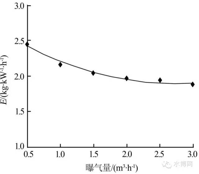 理論動力效率(E)隨曝氣量的變化情況見圖3。