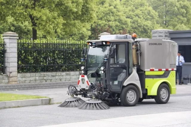 圖注:無(wú)人駕駛掃路車,無(wú)人駕駛系統(tǒng)與掃路車控制系統(tǒng)高度協(xié)調(diào),實(shí)現(xiàn)全工況無(wú)人駕駛功能