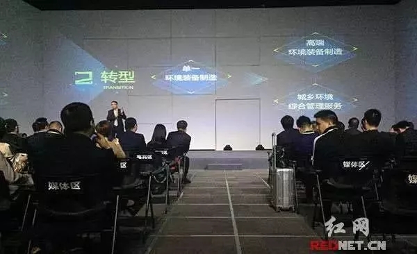 圖注:中聯(lián)環(huán)境執(zhí)行總裁陳培亮闡述兩個(gè)戰(zhàn)略轉(zhuǎn)型