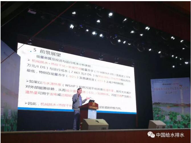 最后得到這樣一個(gè)結(jié)論,我們所推薦的工藝,機(jī)械脫水、熱媒干化、單獨(dú)焚燒,它在輸入能量節(jié)省、投資成本、運(yùn)行費(fèi)用方面都是最低的,特別是能量赤字可以減少27%,基建投資減少41%。這是大家最關(guān)心的,直接燒是不是成本高、能耗高?大家看看能耗還低了228度電。關(guān)鍵是能量輸入減少了27%,基建投資減少了41%。這個(gè)是非??捎^的。如果采用水源熱泵提供熱量,那么這個(gè)節(jié)省將更大,這個(gè)效益將是更加明顯?,F(xiàn)在主要是靠燒煤、燒油提供化石能量。前天早上我看到一個(gè)消息,美國紐約一個(gè)著名律師、生態(tài)活動(dòng)家在紐約一公園焚燒自殺了,什么原因?他就是以他的死來抗議人類過多依賴使用化石燃料對(duì)生態(tài)造成嚴(yán)重破壞,以他的死來警告人類。所以我們?cè)谧囊矐?yīng)該明白為什么。