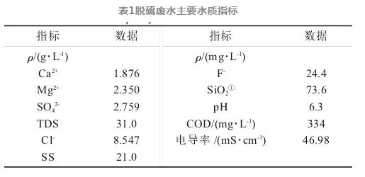 實(shí)驗(yàn)用水為預(yù)沉后的脫硫廢水上清液,水質(zhì)分析結(jié)果如表1所示,該脫硫廢水水質(zhì)呈弱酸性,Ca2+、Mg2+、SO42-及鹽含量均較高。