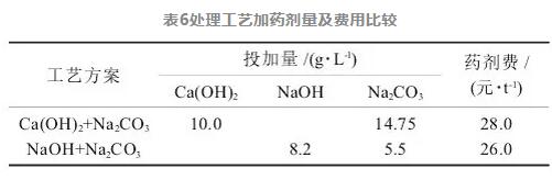 綜合考慮軟化效果和經(jīng)濟(jì)成本,選擇NaOH+ Na2CO3為該電廠脫硫廢水的軟化工藝。