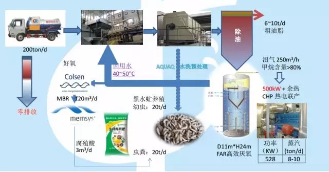 合肥市餐廚垃圾資源化利用和無(wú)害化處理工程(一期)項(xiàng)目則采用的是“水洗分選預(yù)處理+高效厭氧+生物好氧堆肥”路徑。項(xiàng)目日處理量為200噸/日,有機(jī)肥產(chǎn)量近60噸/日。利用黑水虻輔助堆肥處理,極大地降低了堆肥處理時(shí)間,加強(qiáng)了堆肥處理效率,而經(jīng)過水洗+高效厭氧處理的純凈物料又使得黑水虻的養(yǎng)殖效果更佳,而黑水虻本身亦可用于蛋白質(zhì)生產(chǎn)。采用黑水虻養(yǎng)殖工藝極大地增長(zhǎng)了餐廚垃圾資源化收益。