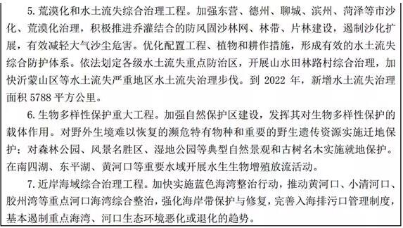 (二)實施生態(tài)修復重大工程。實施濕地修復工程,對集中連片、破碎化嚴重、功能退化的自然濕地進行修復和綜合整治,有效遏制自然濕地萎縮和河湖生態(tài)功能下降趨勢。開展沙化荒漠化治理,以東營、德州、聊城、濱州、菏澤五市為重點,積極推進喬灌結(jié)合的防風固沙林網(wǎng)、林帶、片林建設。推進荒山、荒溝、荒灘整治修復。積極推進泰山山水林田湖生態(tài)修復國家試點工程。支持長島海洋生態(tài)保護和持續(xù)發(fā)展。支持資源型城市開展生態(tài)修復工作,實施礦山環(huán)境治理恢復,持續(xù)推進采煤塌陷地治理。強化農(nóng)業(yè)防災減災能力建設,提高抵御洪澇災害、氣象災害等應急處置水平。