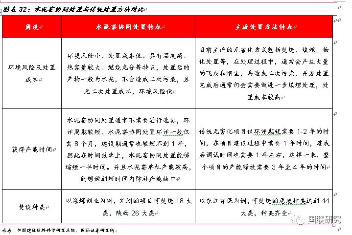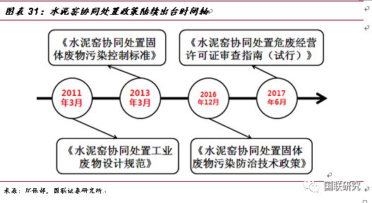 水泥窯協(xié)同處置—危廢無害化處置的有益補充。政策刺激下,水泥窯協(xié)同處置危廢應(yīng)運而生。2011年3月,《水泥窯協(xié)同處置工業(yè)廢物設(shè)計規(guī)范》正式出臺,文件對工業(yè)廢物處置規(guī)模、技術(shù)等進(jìn)行了詳細(xì)要求,標(biāo)志著對水泥窯協(xié)同處置政策成熟化的開端。2013年兩高司法提出非法排放、傾倒、處理3噸以上的危廢入刑,從法律層面上對危廢的排放進(jìn)行了強(qiáng)有力的監(jiān)管,同年3月,《水泥窯協(xié)同處置固體廢物污染控制標(biāo)準(zhǔn)》出臺,規(guī)定了污染排放限值、水泥窯設(shè)施技術(shù)要求以及入窯廢物的特性要求,作為水泥窯協(xié)同處置領(lǐng)域規(guī)范性文件推動了行業(yè)的持續(xù)發(fā)展。2016年12月,《水泥窯協(xié)同處置固體廢物污染防治技術(shù)政策》出臺,文中明確了協(xié)同處置固廢應(yīng)利用現(xiàn)有新型干法水泥窯,采用窯磨一體化的運行方式進(jìn)行運作,政策發(fā)布之后,新建、改建或擴(kuò)建處置危險廢物的水泥企業(yè),應(yīng)按照要求選擇單線設(shè)計熟料生產(chǎn)規(guī)模 4000噸/日及以上水泥窯。2017年6月,《水泥窯協(xié)同處置危廢經(jīng)營許可證審查指南(試行)》出臺,對水泥窯協(xié)同處置危廢的適用范圍、術(shù)語定義、經(jīng)營模式及技術(shù)規(guī)范等方面進(jìn)行了詳細(xì)規(guī)定,并將協(xié)同處置的新型干法水泥窯熟料產(chǎn)能的標(biāo)準(zhǔn)重新進(jìn)行了修訂,由之前4000噸/日調(diào)整下降到2000噸/日,進(jìn)一步擴(kuò)大了產(chǎn)能空間。