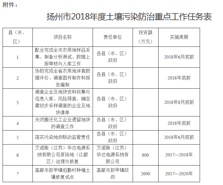 附件:揚(yáng)州市2018年度土壤污染防治重點(diǎn)工作任務(wù)表
