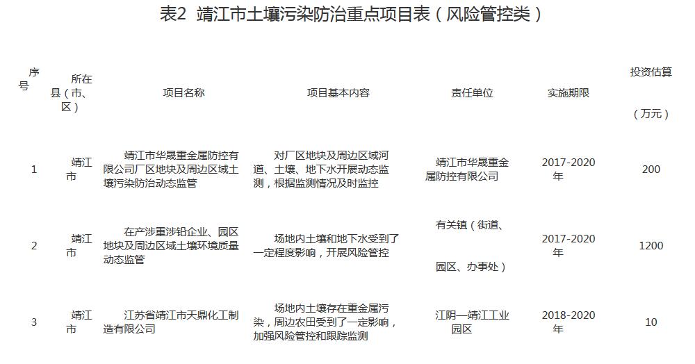 附件:靖江市土壤污染防治重點(diǎn)項(xiàng)目表