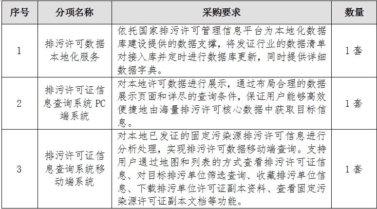 一、采購項(xiàng)目名稱:國家排污許可證系統(tǒng)數(shù)據(jù)本地化服務(wù)