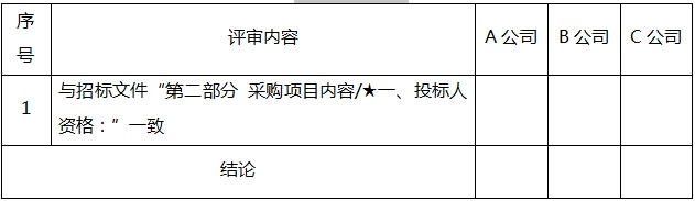 2.投標(biāo)人分欄中填寫“○”表示該項(xiàng)符合審查要求,“×”表示該項(xiàng)不符合審查要求;