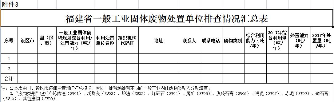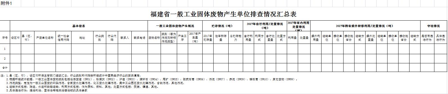 附件:1.福建省一般工業(yè)固體廢物產(chǎn)生單位排查情況匯總表
