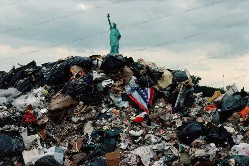 美國攝影師路易˙皮斯霍斯(Louie Psihoyos)的作品:以自由女神像為背景拍攝的美國垃圾場