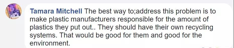 “解決這個問題最好的方式應(yīng)該是讓那些塑料制造商對他們生產(chǎn)的塑料負責(zé),他們應(yīng)該有自己的回收系統(tǒng),這對他們自己有利的同時也有益于我們的環(huán)境?!?/p>