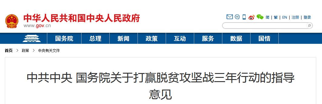 中共中央 國(guó)務(wù)院關(guān)于打贏脫貧攻堅(jiān)戰(zhàn)三年行動(dòng)的指導(dǎo)意見
