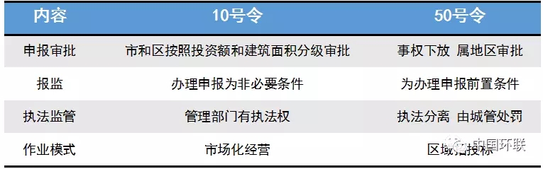 圖注:《上海市建筑渣土和工程渣土處置管理規(guī)定》(10號令)與《上海市建筑垃圾和工程渣土處置管理規(guī)定》(50號令)主要區(qū)別