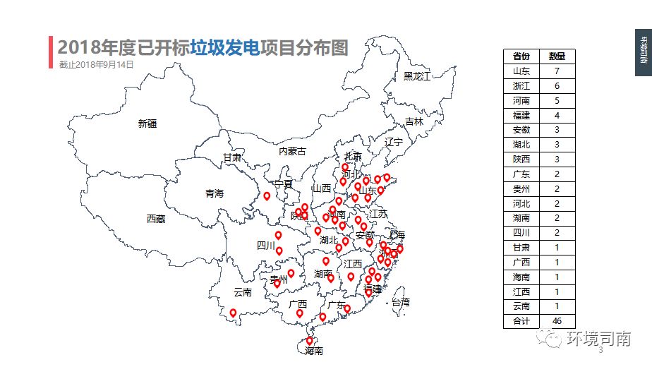 已開標垃圾發(fā)電項目分布