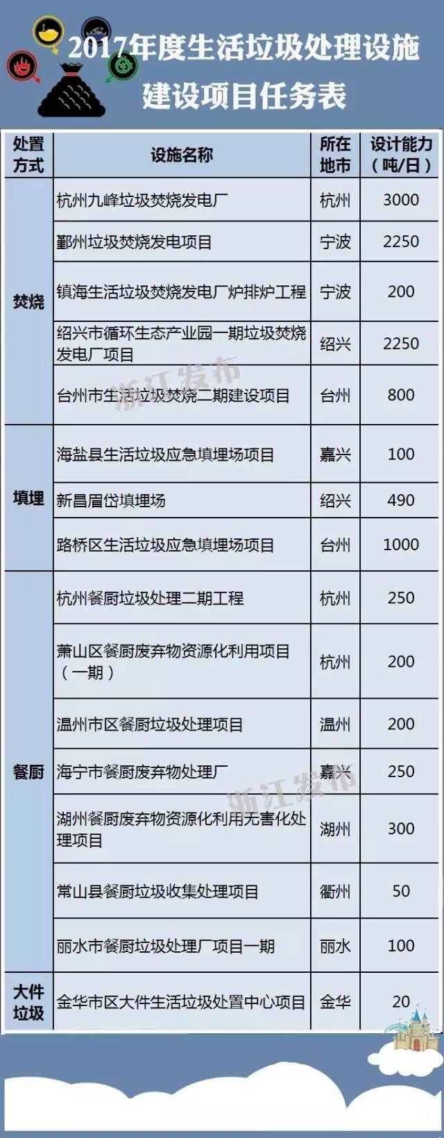 今年浙江將新建16個(gè)生活垃圾末端處置設(shè)施,新增日處理能力1100噸以上。目前16個(gè)生活垃圾末端處置設(shè)施已全部開工建設(shè)。具體名單↓