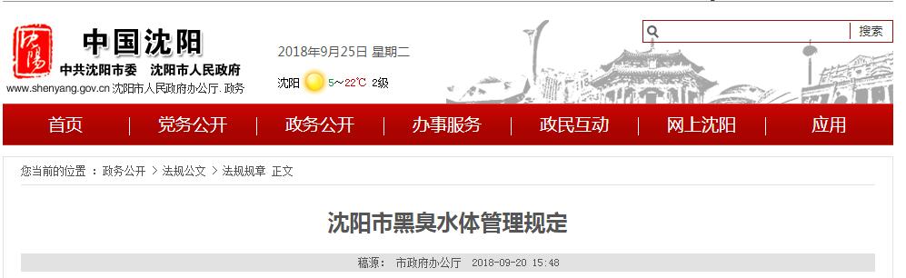 近日,沈陽(yáng)市政府發(fā)布《沈陽(yáng)市黑臭水體管理規(guī)定》,詳情如下: