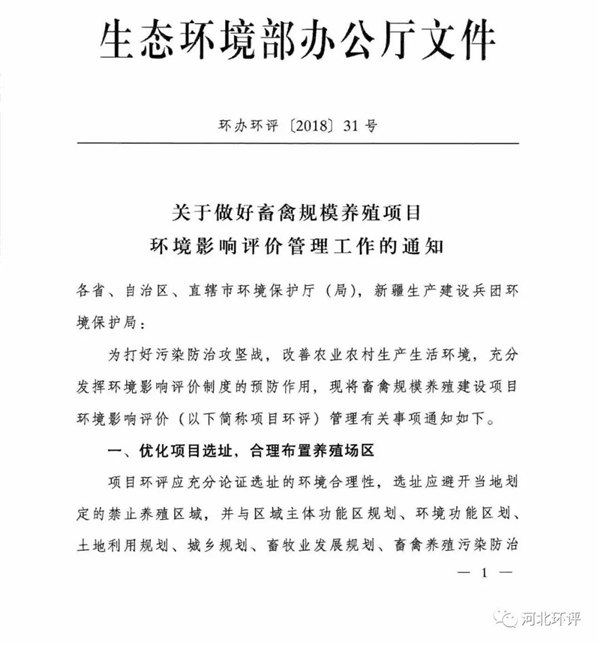 日前生態(tài)環(huán)境部發(fā)布《關(guān)于做好禽畜規(guī)模養(yǎng)殖項(xiàng)目環(huán)境影響評(píng)價(jià)管理工作的通知》,具體內(nèi)容如下: