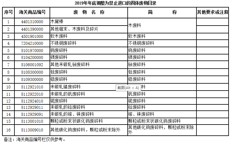 2.2019年年底調整為禁止進口的固體廢物目錄