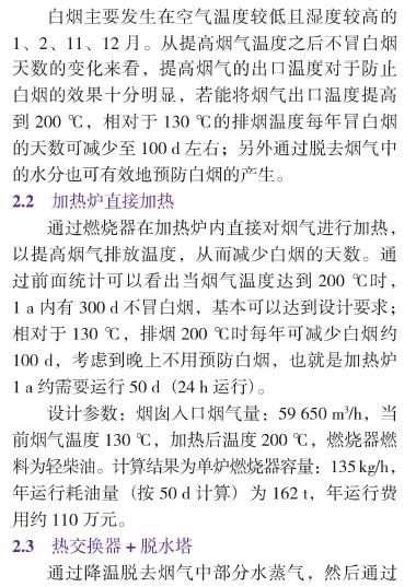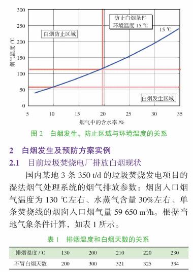 介紹了垃圾焚燒發(fā)電廠煙囪排白煙產生的原理,并以垃圾焚燒煙氣中白煙發(fā)生及預防方案的實例,說明提高排煙的出口溫度或通過脫去煙氣中的水分可以有效地預防白煙的產生。通過運營數據對比,說明采用加熱爐直接加熱或者采用熱交換器、脫水塔組合的方式可以實現防白煙的目的。但同時需要注意煙囪排煙溫度不能過低以避免硫酸酸露點腐蝕的情況發(fā)生。