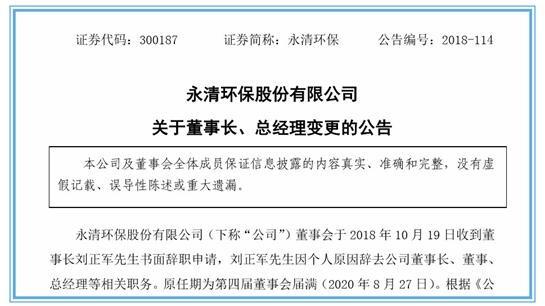永清環(huán)保換帥:劉正軍辭職,80后博士接任董事長(zhǎng)
